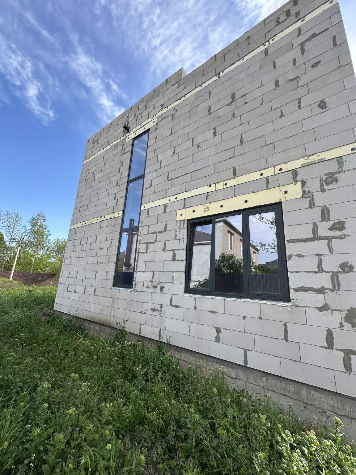 В доме на первом этаже имеется гараж, котельная, санузел и большая кухня-гостиная, на втором этаже санузел, гардеробная и три спальных комнаты. Газ проведен до границы участка. В комнатах установлены большие алюминиевые энергосберегающие окна, так же имеются раздвижные порталы на 1 и 2 этажах. Дом без внутренней и наружней отделки, проект прилагается. Так же имеется проект отопления и водоснабжения.