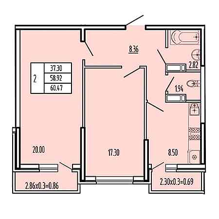 Продам двухкомнатную квартиру 57.2 м.кв.