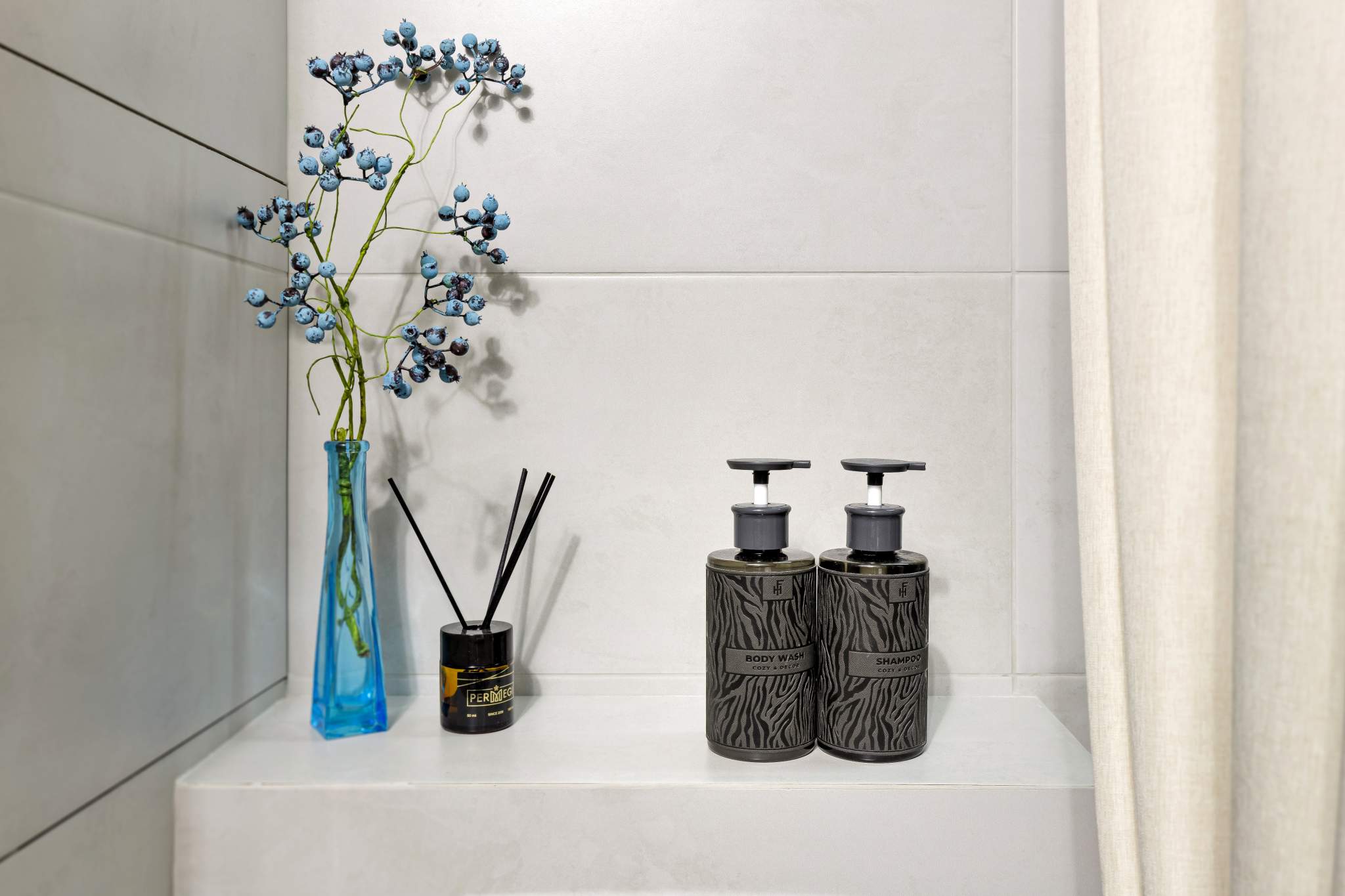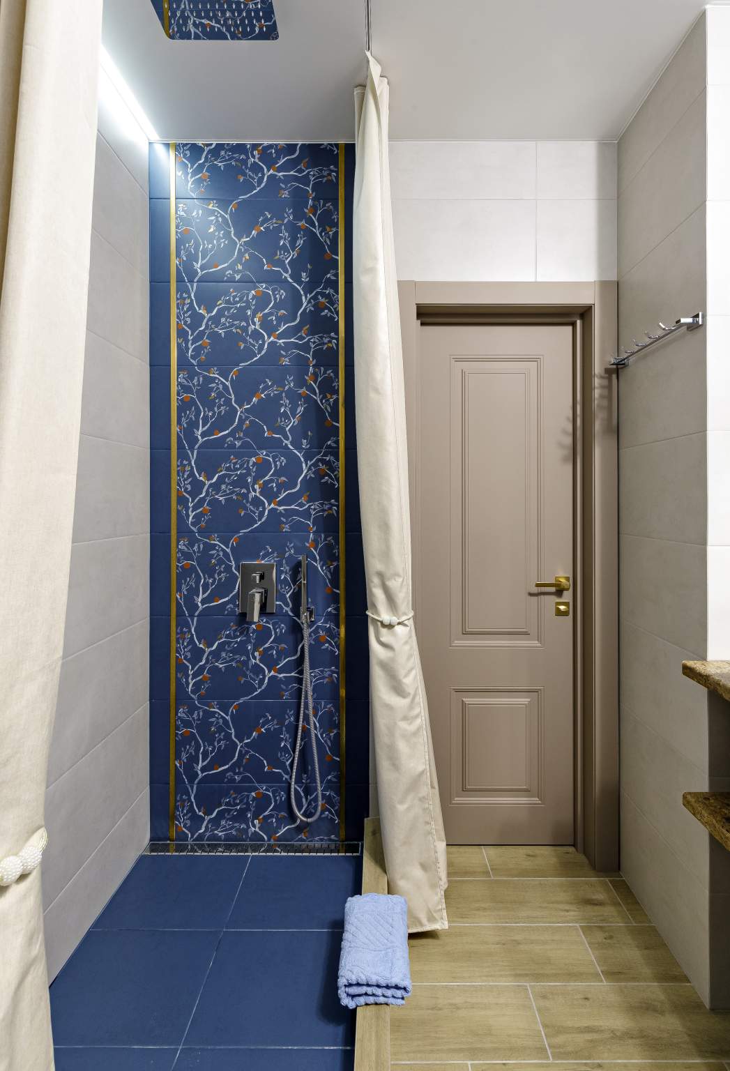 В отделке использованы качественные материалы: полы во всей квартире выполнены из единого керамогранита (в зоне кухни и санузла — теплый пол). Высокие двери с фрамугами и хрустальные каскадные люстры создают атмосферу роскоши и простора.