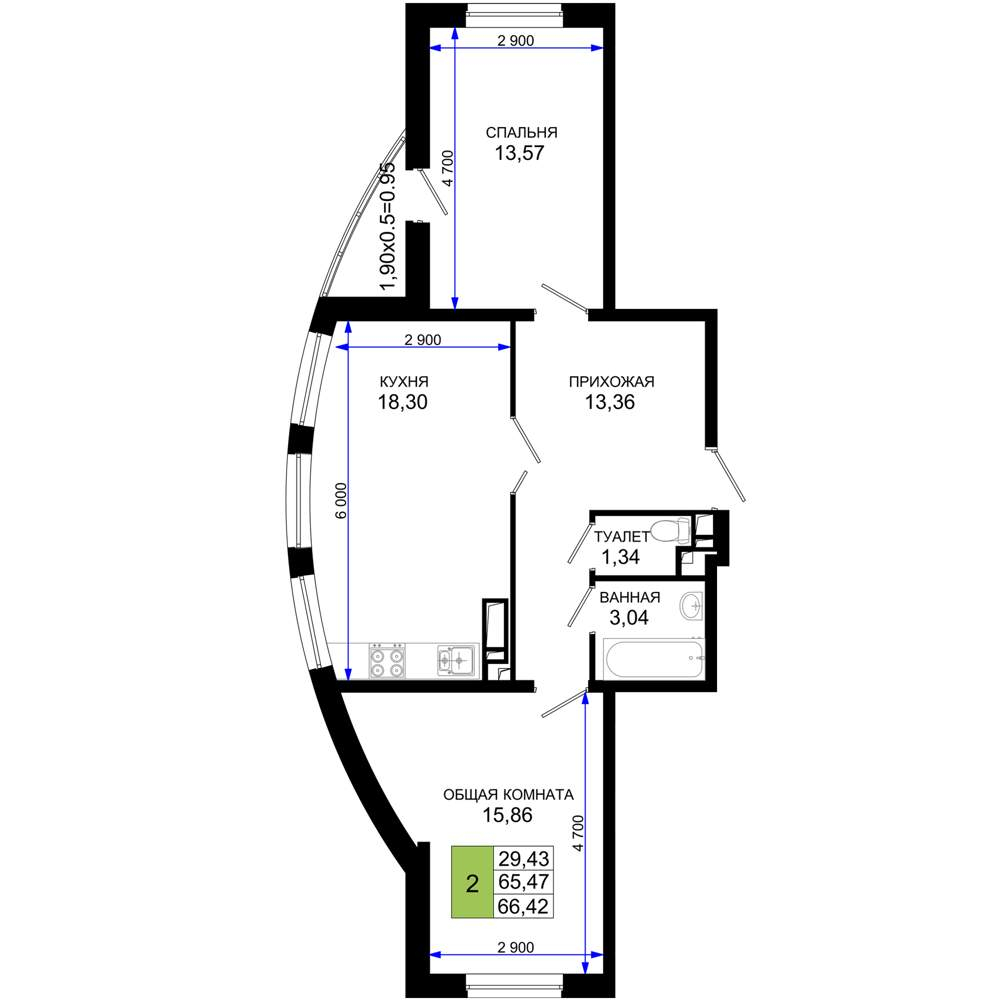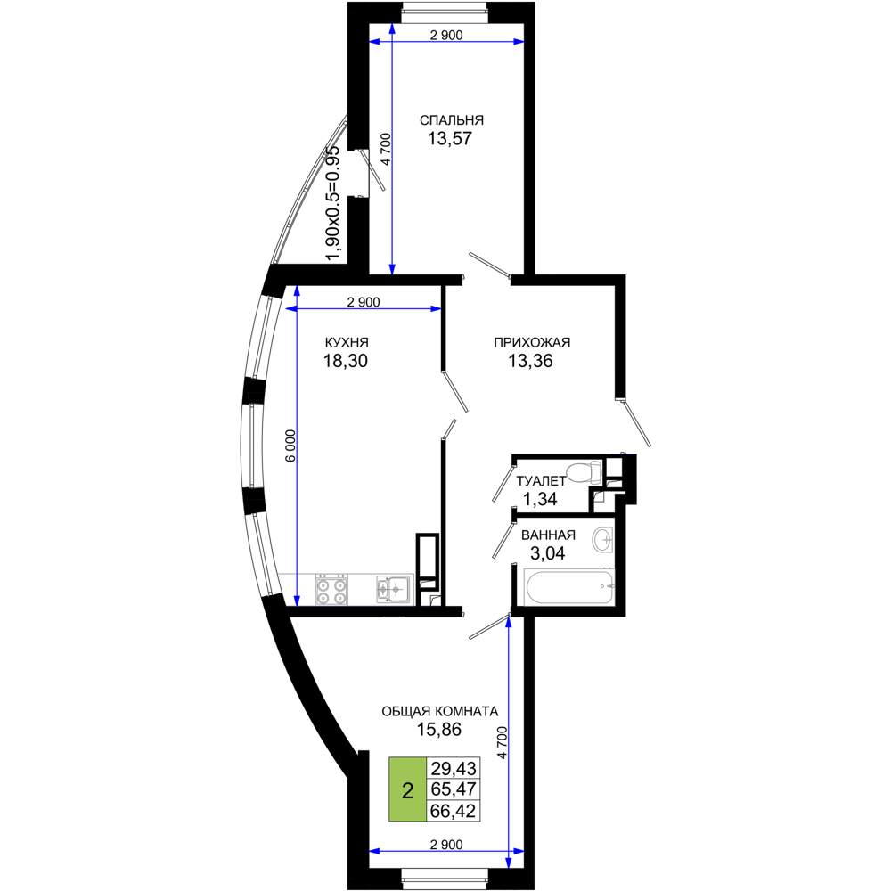 Жилая площадь 29.39 м2, кухня 17.36 м2, предчистовая отделка.