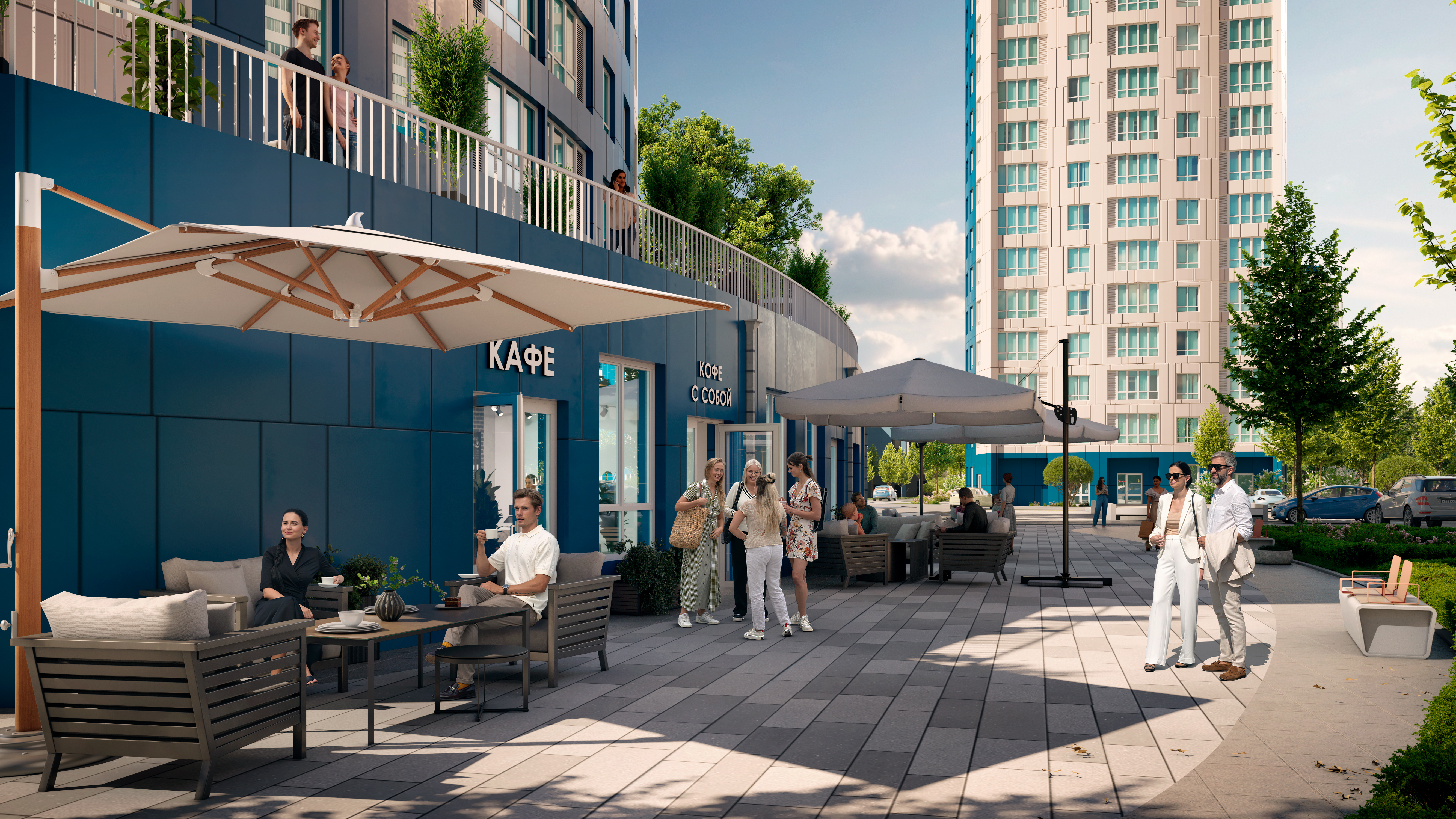 Отдельная многоуровневая парковка, парковка охраняется. Обеспечение безопасности: видеонаблюдение, противопожарная система. Инфраструктура: детский сад, детские площадки, спортивные площадки, места для отдыха, супермаркет, рестораны, фитнес-центр, пункты бытового обслуживания, коммерческие объекты.