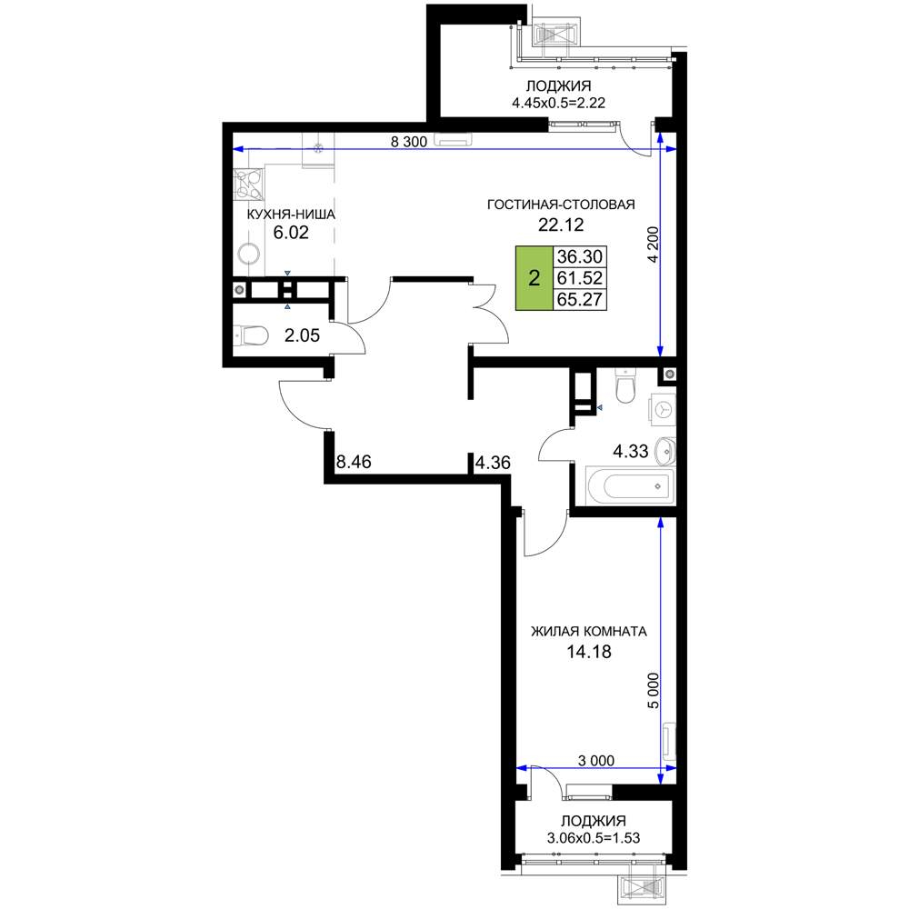 Жилая площадь 33.84 м2, кухня 14.47 м2, предчистовая отделка.