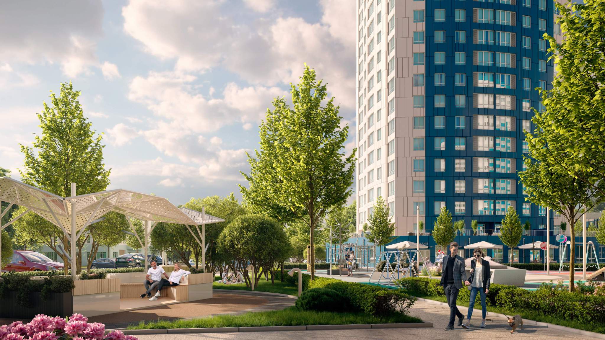 Территория ЖК - продуманное пространство для жизни: здесь найдётся место и для детских игр, и для спокойного отдыха взрослых, а близость к парковой зоне и будущему детскому саду сделает каждый день ещё комфортнее.