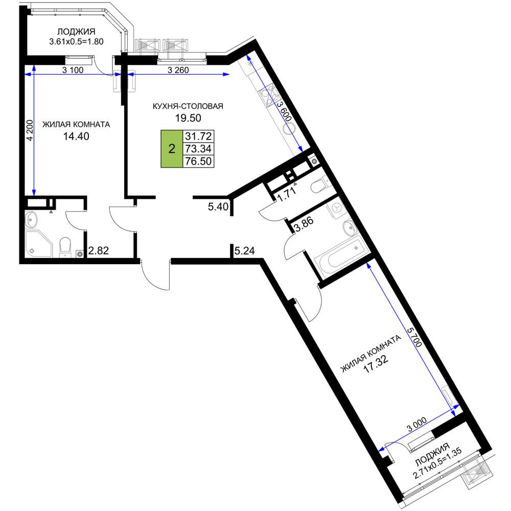 Продажа двухкомнатной квартиры в новостройке в Краснодаре 51-100 кв.м.