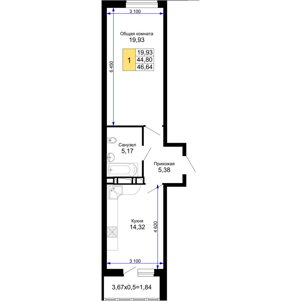 Продается 1-комн. квартира, площадью 45.1 м2 в монолитной новостройке. Возможен вариант покупки с использованием ипотечных средств, есть рассрочка, возможна покупка с использованием материнского капитала, есть военная ипотека.