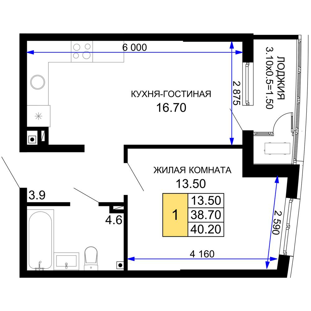 Жилая площадь 11.6 м2, кухня 12.8 м2, предчистовая отделка, комнаты изолированные.