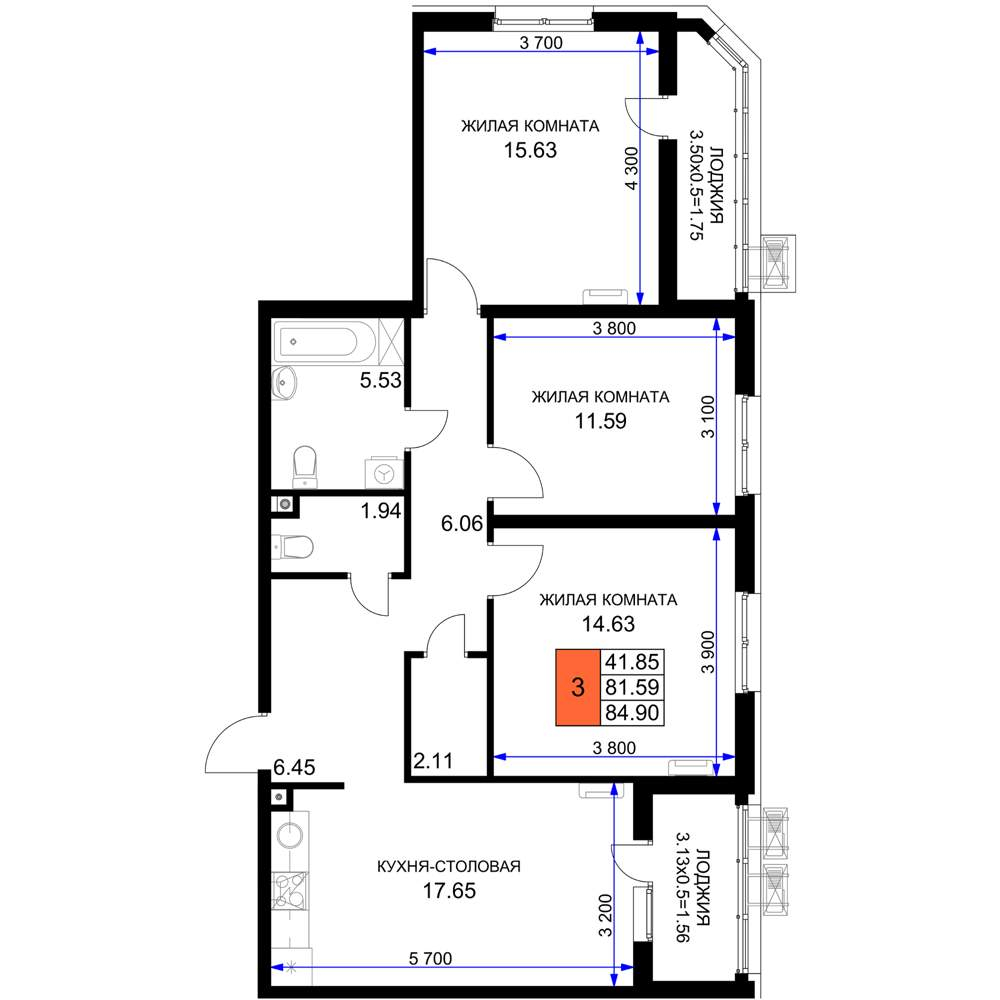 Продажа трехкомнатных квартир в новостройках в Краснодаре