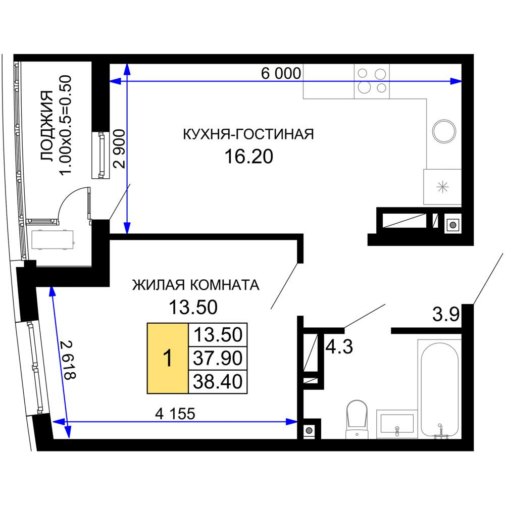 38.4 м2